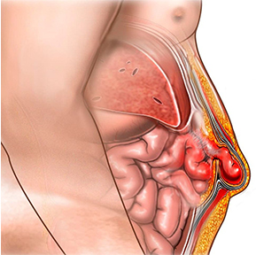 A hernia occurs when an internal organ or tissue slips through a weakened area in the surrounding muscle wall, creating a noticeable bulge or discomfort. It can look like a bulge in the abdomen or groin and often becomes more noticeable when you're lifting something heavy or straining.
